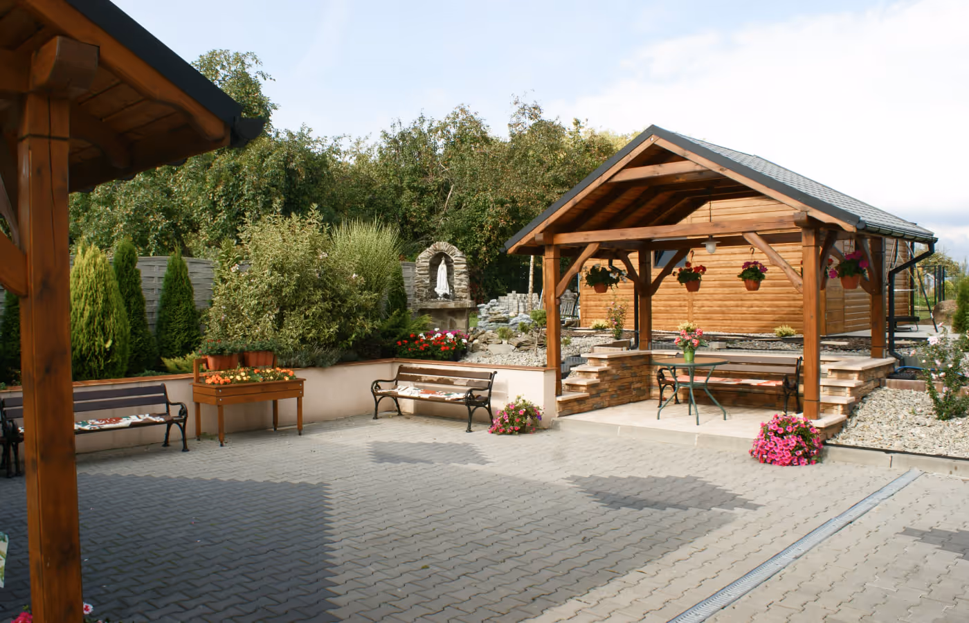 W sezonie wiosenno-letnim naszym pensjonariuszom oferujemy dostęp do przestrzeni zielonej wokół Domu Opieki, w której znajduje się zielony ogród, altany i grill.